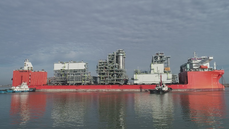 天空出彩霞,海上起蛟龍。2020年10月25日,在GCGV, 三菱和燕達海門全體人員的共同努力下,裝載著GCGV PE模塊項目第一船7個模塊的“巨輪緩緩駛離燕達碼頭。