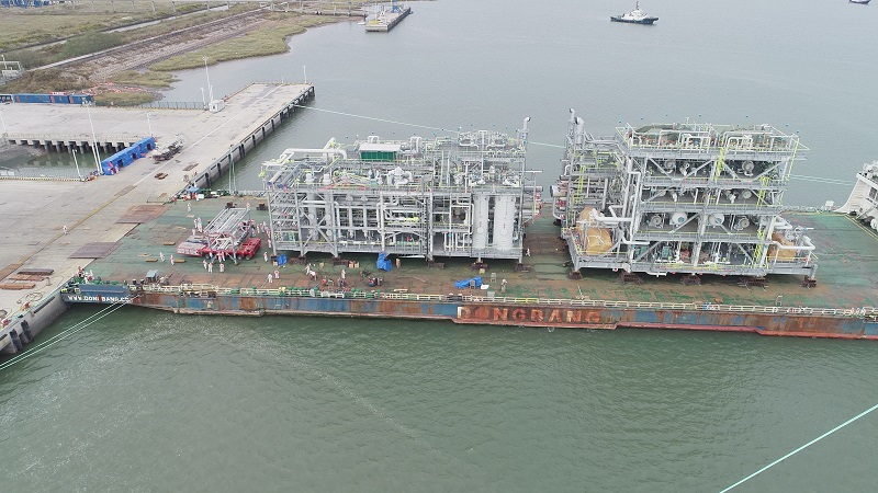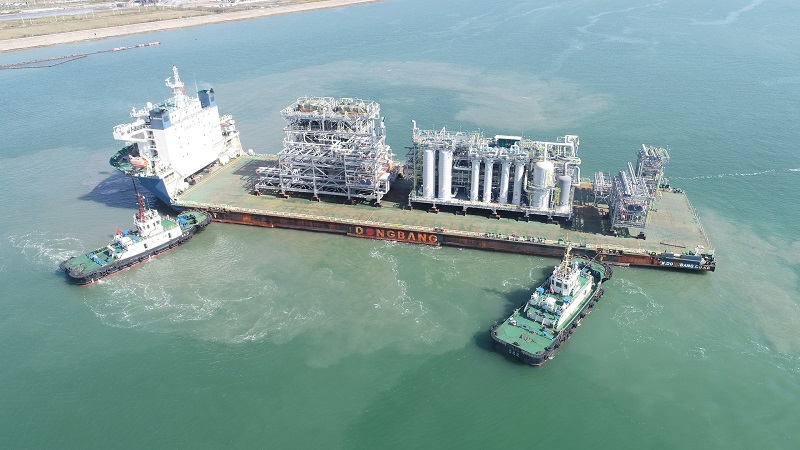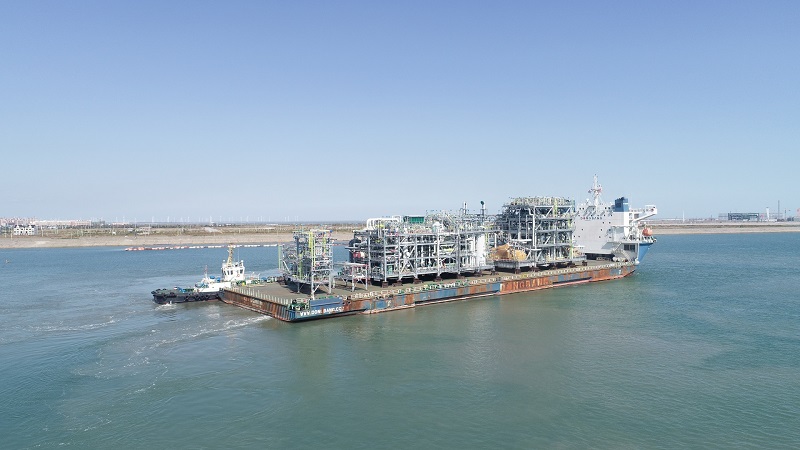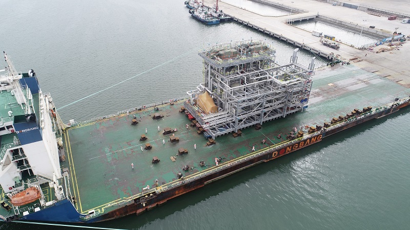 燕達海門和三菱、GCGV業(yè)主方精心組織、協(xié)同合作、共同發(fā)力,GCGV PE項目第二船5個模塊于2020年10月31日順利駛離燕達碼頭。